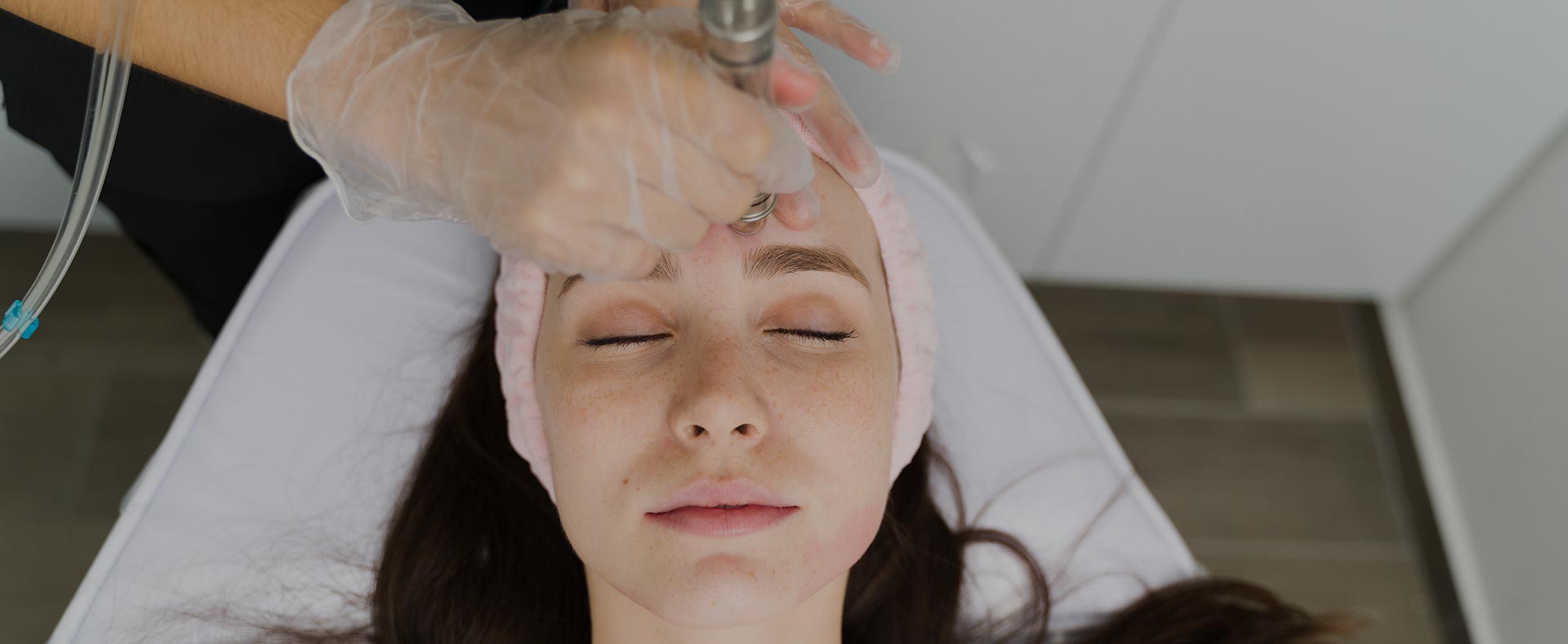 A microdermabrasion treatment involves your specialist spraying or rubbing a fine crystal onto the skin with a wand that gently exfoliates the skin surface, removing the top layer of skin. This will help stimulate healthy cell, collagen, and elastin production while removing dead and flaking skin cells. It is a relaxing, comfortable, and painless treatment, with no downtime. It usually takes between 30-40 minutes for the face, and 20 minutes for the neck. You may experience some redness afterwards for less than an hour.